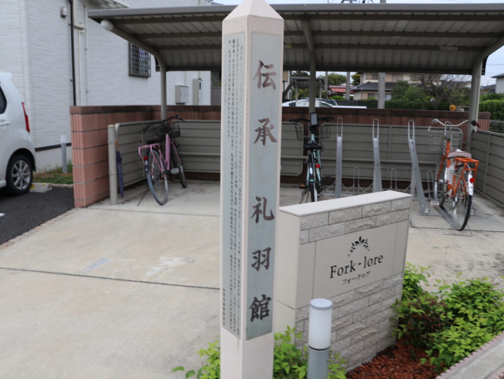 鎌倉時代の館。礼羽氏は野与党の一族で、礼羽次郎の居館だったそうだが現在は住宅地で「伝承 礼羽館」の標柱があるだけだ。